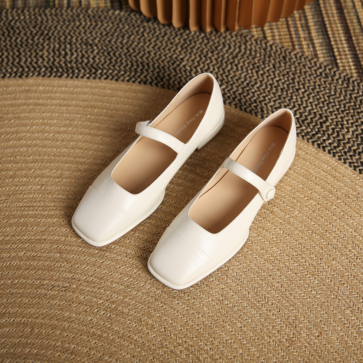 2022 New Retro Square Head Simple Line With Mary Jane Women's Shoes Niche Design Sense Thick Heel French Single Shoes Women