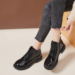 Shoes Women 2022 New Single Shoes Women's High Heels Spring And Autumn New Shallow Mouth Patent Leather Thick With British Style All-Match Leather Shoes Women